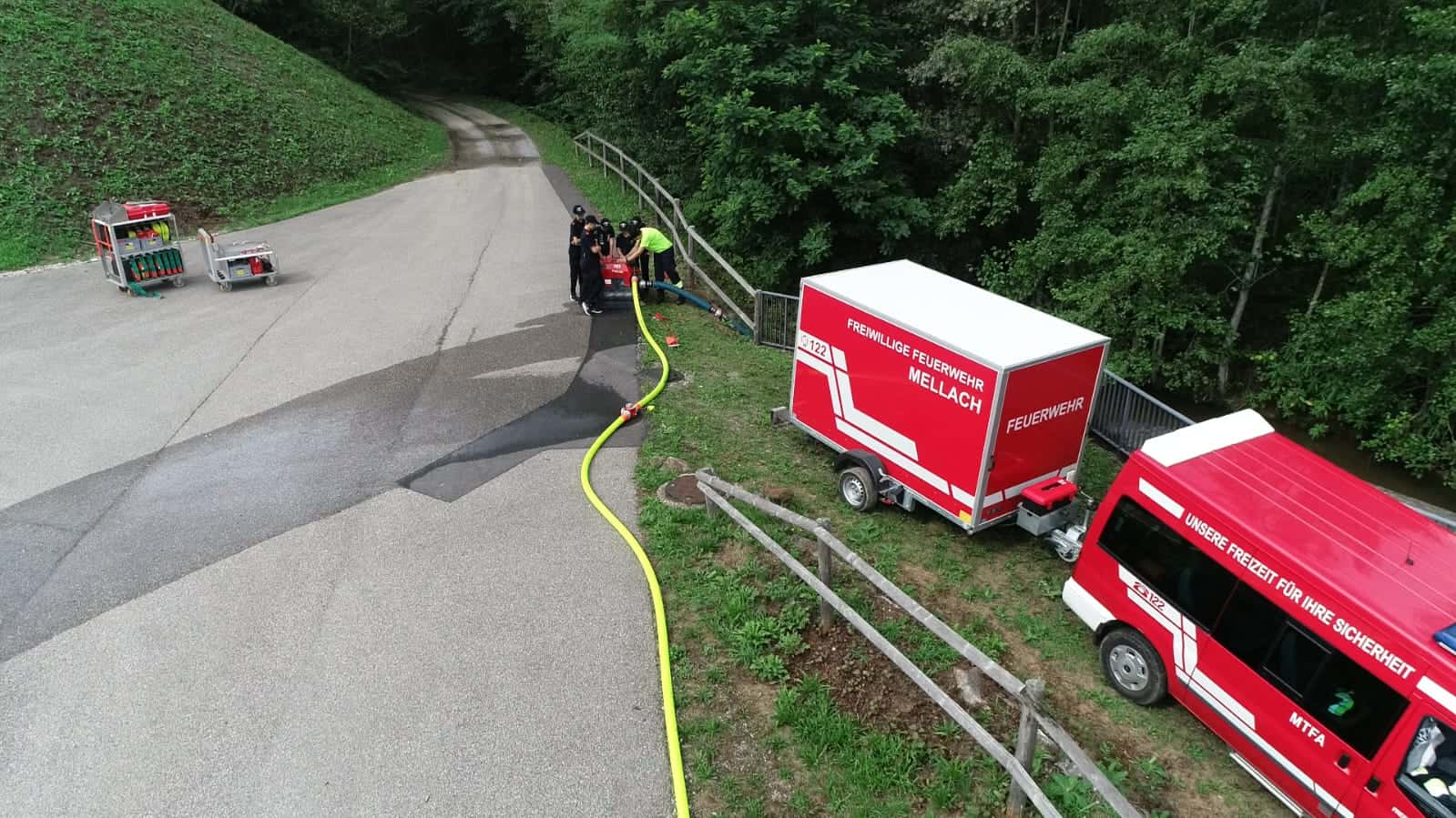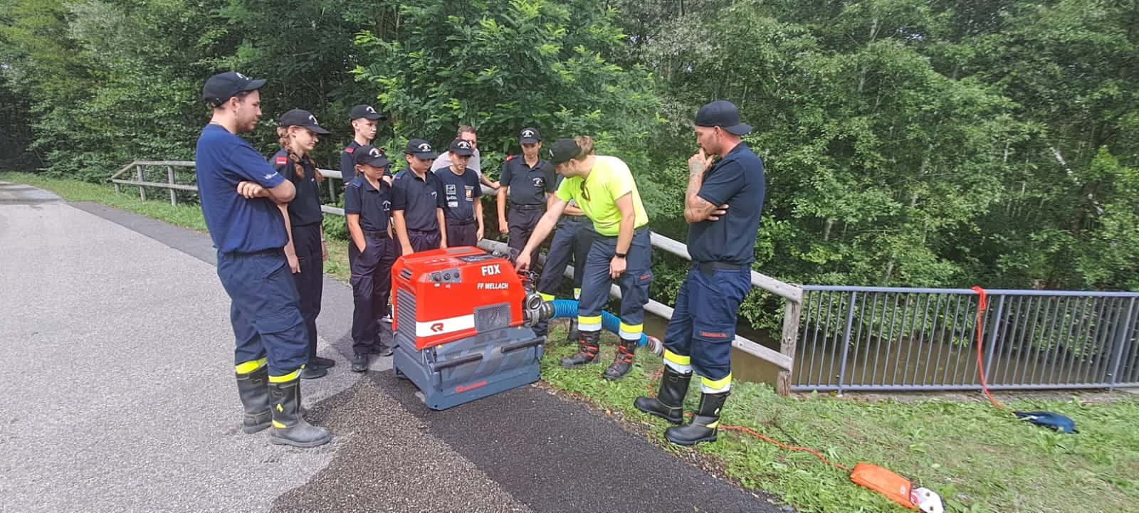 Parallel dazu beschäftigte sich die zweite Gruppe mit der Tragkraftspritze. Ziel war es, die Pumpe unter realistischen Bedingungen am Flussufer in Betrieb zu nehmen, Wasserförderung zu simulieren und die Handhabung im Einsatzfall zu optimieren. Auch hier wurde auf Teamarbeit und präzise Abläufe großer Wert gelegt.