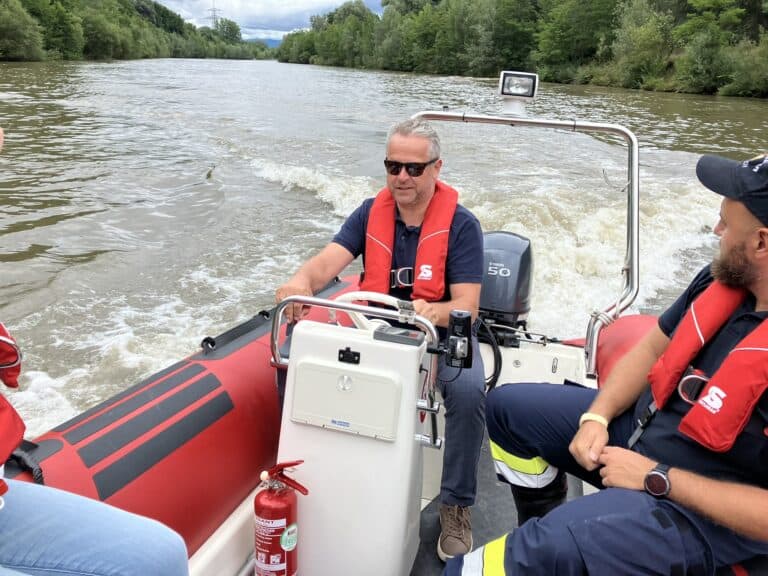 Auch unser Bürgermeister Robert Tulnik überzeugte sich von der Übung und stattete uns einen Besuch ab – natürlich durfte auch hier eine kleine Runde mit dem Einsatzboot nicht fehlen.