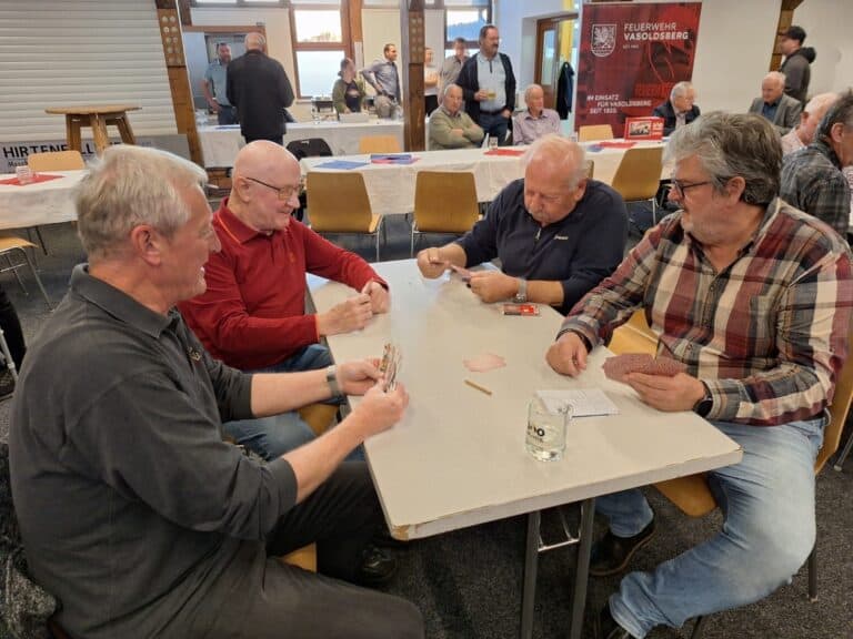 In geselliger Runde wurde nicht nur um Punkte gespielt, sondern auch viel gelacht und gefachsimpelt. Zahlreiche spannende Partien sorgten für beste Stimmung und zeigten einmal mehr, dass beim Schnapsen Taktik, Glück und eine gute Portion Humor zusammengehören.